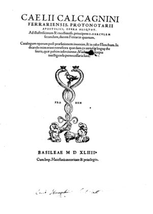 2. ^ Quirinus Breen, "Celio Calcagnini (1479-1541)", Church History, Vol. 21, No. 3 (September 1952), pp. 225-238.