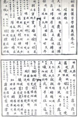 - Giải âm (解音) - a category of chữ Nôm texts that translates the "sounds" (word-for-word) of the original Literary Chinese text.[67][68] Examples include Tam thiên tự giải âm (三千字解音), etc. Often these translations attempt to match the word order as the original Literary Chinese text with no regard for Vietnamese syntax). There is significant diversity within works called giải âm (even within a single text), with some coming fairly close to the modern concept of translation, while some are closer to annotations with "word-matching" between Literary Chinese and Vietnamese, with little to no regard to the structure or syntax of Vietnamese.