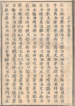 Children around the age of 6–8 begin learning chữ Hán at schools.[11] Students began by learning characters from books such as Nhất thiên tự (一千字; 'one thousand characters'), Tam thiên tự (三千字; 'three thousand characters'), Ngũ thiên tự (五千字; 'five thousand characters'), and the Three Character Classic (三字經).[11] The primers were often glossed with chữ Nôm.[12] As such with Nhất thiên tự (一千字), it was designed to allow students to make the transition from Vietnamese grammar to Classical Chinese grammar.[13] If students read the Chinese characters only, the words will be in an alternating rhyme of three and four, but if it was read with the chữ Nôm glosses, it would be in the Vietnamese lục bát rhyme. These books gave students a foundation to start learning more difficult texts that involved longer sentences and more difficult grammatical structures in Literary Chinese. Students would study texts such as Sơ học vấn tân (𥘉學問津; 'inquiring in elementary studies'), Ấu học ngũ ngôn thi (幼學五言詩; 'elementary learning of the five-character verses'), Minh tâm bảo giám (明心寶鑑; 'precious lessons of enlightenment'), and Minh Đạo gia huấn (明道家訓; 'precepts of Minh Đạo').[14] These books taught the basic sentences necessary to read Literary Chinese and taught core Confucian values and concepts such as filial piety. In Sơ học vấn tân (𥘉學問津), it has four character phrases that were divided into three sections, one on Chinese history, then Vietnamese history, and lastly on words of advice on education.[13]