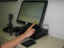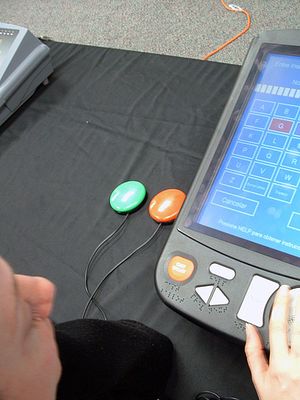 A Hart eSlate DRE voting machine with jelly buttons for people with manual dexterity disabilities.