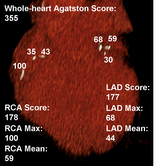 - ^ أ ب Qian Z, Anderson H, Marvasty I, Akram K, Vazquez G, Rinehart S, Voros S (2010). "Lesion- and vessel-specific coronary artery calcium scores are superior to whole-heart Agatston and volume scores in the diagnosis of obstructive coronary artery disease". Journal of Cardiovascular Computed Tomography. 4 (6): 391–9. doi:10.1016/j.jcct.2010.09.001. PMID 21035423.