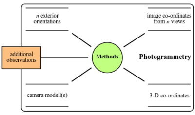 يبدأ المصورون المساحيون عملهم بالحصول على صور ضوئية للمنطقة، أو الأشياء المراد قياسها. قد تؤخذ الصور الضوئية على الأرض، أو من طائرة، أو مركبة فضاء. وبعامة، يعمل المصورون المساحيون بصور ضوئية عادية، لكنهم يستخدمون أيضاً صوراً ملتقطة بالرادار أو أجهزة الاستشعار عن بعد، التي تقيس الظواهر باستخدام الأطوال الموجبة خارج المدى المرئي. أجهزة الاستشعار دون الحمراء، التي تقيس الحرارة هي نوع من الاستشعار عن بعد. معظم الصور الضوئية المستخدمة في صنع الخرائط مأخوذة من الطائرة بنوع خاص من آلات التصوير. حيث تلتقط آلات التصوير الصور الضوئية من الأجزاء المتداخلة في المنطقة التي سيتم رسم خرائطها.
