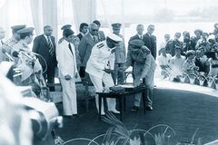 ثم افتتح الرئيس السابق محمد أنور السادات القناة في 5 يونيو 1975 في احتفال عالمي سجل فيه كلمته: