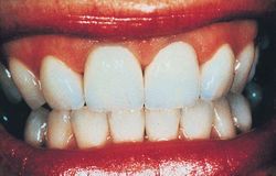 ج ـ التاج الخزفي الكامل the complete ceramic crown: وهو التاج الأكثر جمالاً في التعويضات السنية الثابتة على الإطلاق. ولغياب المعدن تحت الخزف فإنه لا يوجد عائق لمرور الضوء من خلال التاج الخزفي إلى السن المحضرة ومن ثم يكون التاج الخزفي الكامل أكثر انسجاماً مع الأسنان الطبيعية المجاورة من حيث اللون والشفوف.