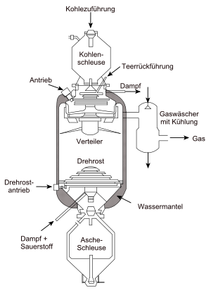 يسحق الفحم ليتم بعده تسخين المسحوق بواسطة بخار ساخن بطريقة تشبه تسخين حبات الذرة لعمل البوشار، ثم تتسبب الحرارة المنتشرة بحدوث تفاعلات كيميائية ينتج عنها إطلاق الغازات الأساسية من جزيئات الفحم وبشكل أساسي الهيدروجين وأول أكسيد الكربون القابلان للاستخدام لتوليد الكهرباء في خلايا الأكسدة الصلبة.[4]