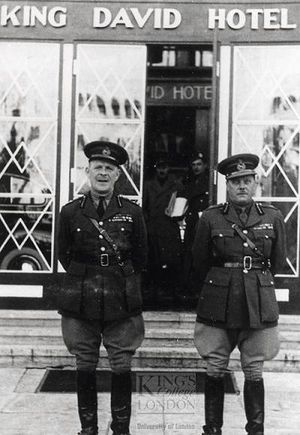 كان هذا الفندق إبان الإنتداب البريطاني على فلسطين المقر الرئيسي للإدارة البريطانية المدنية، التي احتلت جناحه الجنوبي، ولهذا السبب استهدفته منظمة الأرجون ، مطالبة البريطانيين باستعجال الرحيل لإنشاء الدولة الإسرائيلية. ولم يكن مفهوما لكثيرين الإرهاب الذي مارسته العصابات الصهيونية والذي جعل من البريطانيين أحد أهدافه، رغم ان البريطانيين مهدوا بانتدابهم لاقامة الدولة العبرية.