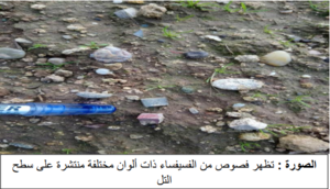 تم التعدي على الموقــع من خــالل الحفر الســري من قبل أهالي المنطقة وخاصة الطرف الشمالي ، وسطح التل .[1]