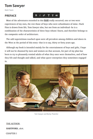 تعد خيارات تنسيق النص هي الأخرى قليلة: مستويان من العناوين، مستوى واحد من القوائم، وبإمكانك تثخين الخط، جعله مائلاً، وبإمكانك وضع الاقتباسات، وكذلك الروابط التشعبي[48]