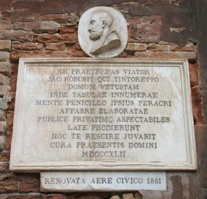 1. ^ According to historian Stefania Mason, the discovery and publication in 2004 of a "fanciful account" in a letter of 1678 to a Spanish art collector from his agent in Venice is responsible for a misconception that Jacopo's surname was Comin. "Robusti is the name that appears in his tax declarations" and other official documents. Echols 2018, pp. 39–40, 227.