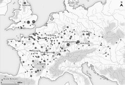 Oppida appeared more or less simultaneously from the Atlantic to central Europe in the second century BC.[31] More than 180 oppida are known today, stretching from France in the west to Hungary in the east. Oppida-like settlements are also known from Britain and northern Spain.[32][33]