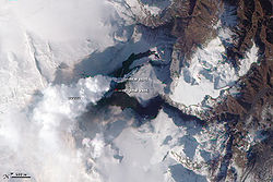 صورة من وكالة ناسا توضح الشق الجديد في البركان التقطت في 1 أبريل 2010.