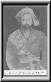 جابر بن مرداو الكعبي (و. 1780 - ت. 1881)، هو شيخ المحمرة[2] الذي أسسها كميناء حر ومشيخة خلال القرن التاسع عشر. كان جابر شخصاً ذكياً وفطناً. أقام علاقة ودية مع شاهات القاجار. وظل في حكمه للمحمرة مستمتعاً بلقب نصرة الملك حتى وفاته في أكتوبر 1881. أصبح جابر أيضاً الحاكم العام المعين من قبل الدولة القاجارية لمنطقته. كان جابر الكعبي زعيم قبيلة بني كعب العربية وشيخ المحمرة خلال معظم سنوات القرن التاسع عشر.[3]