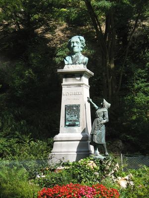 تمثال لمايربير في بلدة سپا، البلجيكية، حيث أقام هناك عدة مرات.