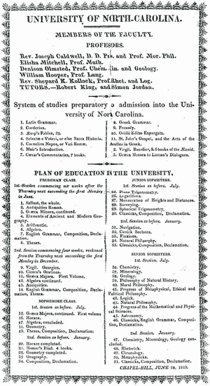Following the Civil War, the university began to modernize its programs and onboard faculty with prestigious degrees.[26] The creation of a new gymnasium, funding for a new Chemistry laboratory, and organization of the Graduate Department were accomplishments touted by UNC president Francis Venable at the 1905 "University Day" celebration.[27]