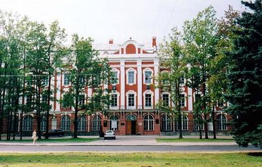 The Twelve Collegia building on Vasilievsky Island in Saint Petersburg is the university's main building and the seat of the rector and administration (the building was constructed on the orders of Peter the Great)
