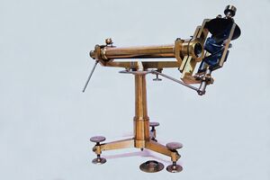 Gauss took on the directorate of the 60-year-old observatory, founded in 1748 by Prince-elector George II and built on a converted fortification tower,[6] with usable, but partly out-of-date instruments.[7] The construction of a new observatory had been approved by Prince-elector George III in principle since 1802, and the Westphalian government continued the planning,[8] but Gauss could not move to his new place of work until September 1816.[9] He got new up-to-date instruments, for instance two meridian circles from Repsold[10] and Reichenbach,[11] and a heliometer from Fraunhofer.[12]