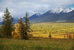 The landscapes of the Urals vary with both latitude and longitude and are dominated by forests and steppes. The southern area of the Mughalzhar Hills is a semidesert. Steppes lie mostly in the southern and especially south-eastern Urals. Meadow steppes have developed on the lower parts of mountain slopes and are covered with zigzag and mountain clovers, Serratula gmelinii, dropwort, meadow-grass and Bromus inermis, reaching the height of 60–80 سنتيمتر (24–31 in). Much of the land is cultivated. To the south, the meadow steppes become more sparse, dry and low. The steep gravelly slopes of the mountains and hills of the eastern slopes of the Southern Urals are mostly covered with rocky steppes. River valleys contain willow, poplar and caragana shrubs.[3]