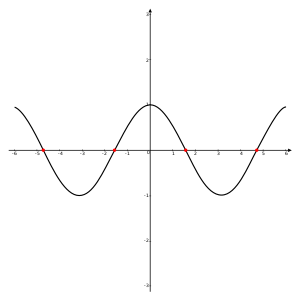إذا كان التابع ممثل بمجموعة الأعداد الحقيقية، فإن جذوره هي نقاط تقاطع مخطط التابع مع محور السينات x، وهو ما يطلق عليه نقطة قطع محور السينات.