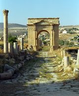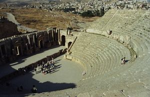 المدينة الرومانية گـِراسا وجرش الحالية (في الخلفية).
