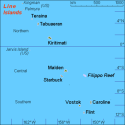 تسيطر الولايات المتحدة على ثلاث من تلك الجزر وهي: جارفس، وكنجمان ريف، وبالميرا. وتشكل الجزر الثماني الأخرى من مجموعة جزر خط الاستواء جزءًا من جزر كيريباتي، وهي جزر كارولين، وفلنت، وكريتيماتي (ويطلق عليها اسم جزيرة كريسماس أيضاً)، ومالدن وستاربَك، وتابيوران فانينج، وترينا (واشنطن)، وفوستوك. وتشمل جزر كيريباتي أيضًا بانابا، وجزر جيلبرت، وجزر فينيكس.