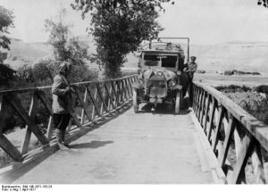 عام 1918، أثناء حملة سيناء وفلسطين في الحرب العالمية الأولى، استولت القوات البريطانية على الجسر. في ذلك الوقت كان الجسر مستخدماً كجزء من طريق نابلس-السلط[1] – عمان.