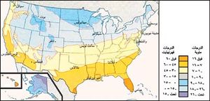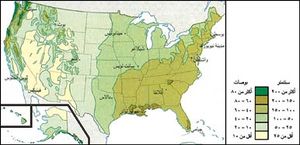 وقد ساعد اعتدال مناخ الولايات المتحدة على انتشار الاستيطان البشري في مختلف المناطق. وعلى تنوع المنتجات الزراعية.