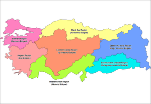 تنقسم تركيا إلى سبعة مناطق مقسمة حسب التعداد السكاني هي كالتالي:
