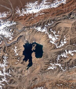 Karakul is a lake formed inside a meteor crater in Tajikistan.