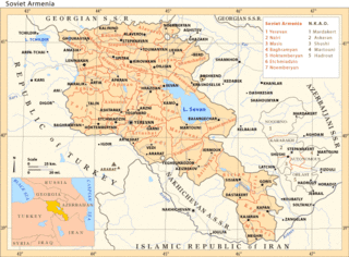 أرمينيا ( []ɑrˈmiːniə[];[1] بالأرمينية: Հայաստան, IPA: [];[أ] روسية: Армения; Armeniya)، ورسمياً Armenian Soviet Socialist Republic (Armenian SSR; بالأرمينية: Հայկական Սովետական Սոցիալիստական Հանրապետություն; روسية: Армянская Советская Социалистическая Республика, romanized: Armyanskaya Sovetskaya Sotsialisticheskaya Respublika), also commonly referred to as Soviet Armenia, was one of the constituent republics of the Soviet Union in December 1922 located in the South Caucasus region of Eurasia. It was established in December 1920, when the Soviets took over control of the short-lived First Republic of Armenia and lasted until 1991. It is sometimes called the Second Republic of Armenia, following the First Republic of Armenia's demise.