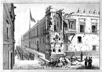 Valentín Gómez Farías, the exiled last president of the First Mexican Republic, had now arrived in the country to take command of the revolt. Government and federalist forces now converged at the capital. Federalists occupied the entire vicinity of the National Palace while government forces prepared their positions for an attack. Skirmishes broke out the entire afternoon, sometimes involving artillery.[17]
