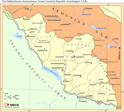 خريطة جمهورية نخجوان الآذربيجانية الاشتراكية السوڤيتية.