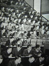 The origins of Polish television date back to the late 1930s,[28][29] however, the beginning of World War II interrupted further progress at establishing a regularly televised program. The first prime state television corporation, Telewizja Polska, was founded after the war in 1952 and was hailed as a great success by the communist authorities.[30] The foundation date corresponds to the time of the very first regularly televised broadcast which occurred at 07:00 p.m CET on 25 October 1952.[30] Initially, the auditions were broadcast to a limited number of viewers and at set dates, often a month apart. On 23 January 1953 regular shows began to appear on the first and only channel, TVP1.[31] The second channel, TVP2, was launched in 1970 and coloured television was introduced in 1971. Most reliable sources of information in the 1950s were newspapers, most notably Trybuna Ludu (People's Tribune).
