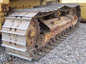Note the elevated drive sprocket, with advantages for large earth-moving machines[21]