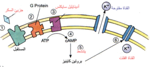 المستقبلات الحسية هي بنية الجسم التي تقوم بتحويل الإثارة من شكل من أشكال الطاقة إلى شكل آخر. يحدث الإحساس بالتذوق في الفم حيث تقوم المادة المذابة بالارتباط بغشاء البلازما للمستقبلات الحسية التي تقوم بالتذوق باسم حليمات التذوق والتي توجد على اللسان ومن ثم تنشط قناة G بروتين وتبعاً لذلك يتنشط Adenylyl cyclase ويتحول الـ ATP إلى cAMP , حيث يقوم cAMP بتفعيل البروتين كاينزيز protein kinase وبهذا يقوم البروتين كاينيز بقفل قناة البوتاسيوم .