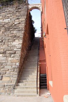 - The Exorcist (1973) was set in the neighborhood and partially filmed there. In the movie's climactic scene, the protagonist is hurled down the 75-step staircase at the end of 36th Street NW, which connects Prospect Street with M Street below. The staircase has come to be known as the "Exorcist steps".[35] A false front was built onto the house at the top of the steps so that the bedroom windows would immediately overlook the steps. The real structure is considerably set-back.[36]