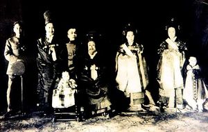 التقطت هذه الصورة في عام 1915 (لم يسمح اليابانيون للعائلة الملكية بأن تجتمع في مكان واحد، واضطر البعض للهرب)، وتظهر الأمير جانغ والإمبراطور سونجونگ، ولي العهد الأمير إيومين، زوجة الإمبراطور سونجونگ الملكة يون . الطفلة في الأمام هي الأميرة دوكهي .