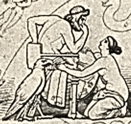 الوضع الذي يتخذه جوپيتر في اللوحة يشبه إلى حد كبير نحت العاج الذهبي الشهير، تمثال زيوس في أوليمپيا (زيوس هو الإله اليوناني المكافئ لجوپيتر)، إحدى عجائب الدنيا السبع القديمة. صنعه النحات اليوناني فيدياس، من الفترة الكلاسيكية، ح. 432 ق.م. وتدمر في العصر العتيق، لكن وضعه في النحت معروفاً من العملات المعدنية والنسخ الصغيرة للنحت. يظهر جوپيتر هنا في وضع معكوس من اليمين إلى اليسار، ذراعه إلى يمين المشاهد أعلى بقليل مما كانت عليه في الأصل، والتي تحمل تمثالاً صغيراً لنايك.