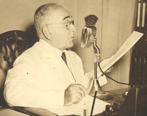 الرئيس ڤارگاس يلقي كلمة للأمة في بث إذاعي في مايو 1954.