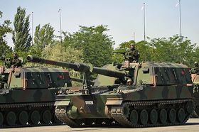 The Turkish-built T-155 Fırtına 155mm self-propelled howitzer of the Turkish Army