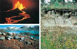 وتنازعت النظريات المتنافسة على أسباب هذه التكوينات. من ذلك أن ابراهام فرنر، الذي ظل اثنين وأربعين عاماً(1775-1817) يعلم في مدرسة المناجم بفرايبورج، جعل كرسي أستاذيته المقر الشعبي للرأي "النبتيوني"، وهو القائل بأن القارات، والجبال، والصخور، والطبقات قد نشأت كلها من فعل المياه، من هبوط محيط كان يوماً يغطي العالم-وهو هبوط بطيء أحياناً، مباغت أحياناً أخرى؛ فالصخور هي ترسب معادن تركها البحر جافة، والطبقات هي فترات هذا الانحسار ورواسبه.