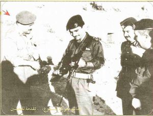 بهجت المحيسن يسلم الملك حسين عينة من غنائم المعركة