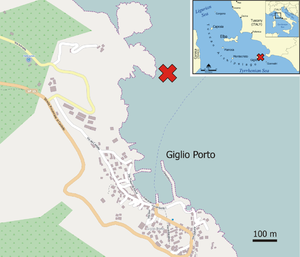 الموقع | أمام شاطئ إيزولا دل گيگليو ، توسكانا، إيطاليا 42°21′53″N 10°55′16″E / 42.36486°N 10.92124°E |