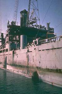 Torpedo damage to Liberty's research compartment (Starboard side).