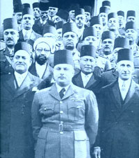 الملك فاروق وعلى يساره مصطفى النحاس باشا ومجموعة من الوزراء.