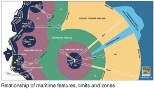 - منطقة الجوار—منطقة تمتد مسافة 24 عقدة بحرية من الشريط الساحلي.[2]