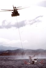 تقطره طائرة هيلوكبتر ويسمى المطرقة يُفجر المجال المغنطيسى الناتج عن المطرقة الألغام المغنطيسية التي ُزرعت تحت الماء.