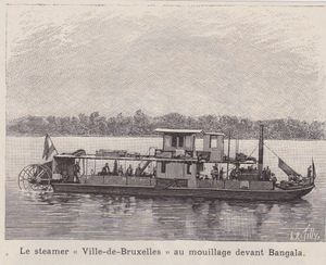 In 1893 Louis-Napoléon Chaltin was head of the Force Publique station at Basoko—the camp at Basoko had been established by the Congo Free State as a precaution, in the event of a quarrel with the Arab slave and ivory traders at Stanley Falls.[31] Captain Chaltin and Richard Mohun—a commercial agent for the United States and the commander of the artillery battery attached to this expedition—were ordered in May 1893 to join Captain Dhanis' forces near Kasongo. Chaltin went up the Lomami River to Bena-Kamba with two river steamers, then striking overland to Riba Riba, near present-day Kindu.[32] At this point, smallpox had broken out in his caravan and Chaltin was forced to return to Basoko. Chaltin arrived at Stanley Falls on the 18th of May, where Captain Tobback and Lieutenant Van Lint had for five days been resisting the attacks of the forces of Rashid ben Mohammed, the nephew of Tippu Tip.[32] On the landing of the troops from Basoko at Stanley Falls, the Arab attackers decamped, leaving the town. After defeating them again at Kirundu, the Arab traders were expelled from the region.[33] Chaltin went on to secure the Dungu region in the northeast of the Congo Free State, and was commander of the Haut-Uélé district from 1893.