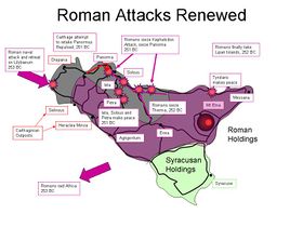 • 251 ق.م.: The Romans again win at Panormus over the Carthaginians, led by Hasdrubal. As a result of the recent losses, Carthage endeavors to strengthen its garrisons in Sicily and recapture Agrigentum. Romans begin siege of Lilybaeum.