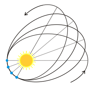 The apsides are the orbital points closest (periapsis) and farthest (apoapsis) from its primary body. The apsidal precession is the first derivative of the argument of periapsis, one of the six main orbital elements of an orbit. Apsidal precession is considered positive when the orbit's axis rotates in the same direction as the orbital motion.