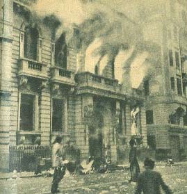 الملك فاروق في مصر، الذي هو أحد أكثر حكام العالم صعوبةً في توقع تصرفاتهم، قام بطرد الحكومة [ الوفدية ] الوطنية التي كادت تشعل الحرب مع بريطانيا. قرار الملك جاء بعد أن شهدت القاهرة أحداث شغب ونهب وتدمير ممتلكات على أيدي عصابات مناهضة للإنجليز. رئيس الوزراء الجديد، علي ماهر باشا، كان قد شغل المنصب في مطلع الحرب العالمية الثانية ويُعتقد أنه أقل قليلاً في عدائه للإنجليز من رئيس الوزراء المـُقال، مصطفى النحاس باشا. إلا أنه من الواضح أن بريطانيا مازالت تواجه وضعاً خطيراً في مصر وفي منطقة قناة السويس. وقد أعلن رئيس الوزراء الجديد أنه سيواصل الضغط لإخراج القوات البريطانية من مصر وتوحيد مصر والسودان الأنجلو-مصري تحت الحكم المصري. وفي تلك الأثناء، وُضِعت القاهرة تحت الحكم العسكري، وأُعلِنت الأحكام العرفية المشددة في جميع أرجاء مصر. وقد تم تدمير 35 مبنى بحريق القاهرة أثناء الشغب وقـُتـِل 100 شخص. الأحكام العرفية سوف يستمر سريانها على الأقل لمدة شهرين، كما أعلنت الحكومة. ―― صحيفة "بلنگز كاونتي پايونير"، في 14 فبراير 1952. |